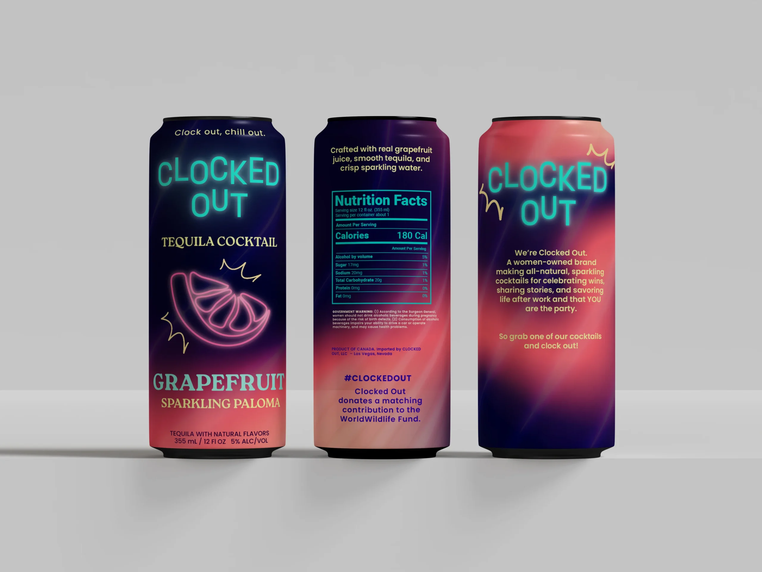 Clocked Out is for the social drinker who wants elegance that meets fun, sophisticated taste in a can that knows how to party. And with every purchase, half the proceeds go to the Global Fund for Women.