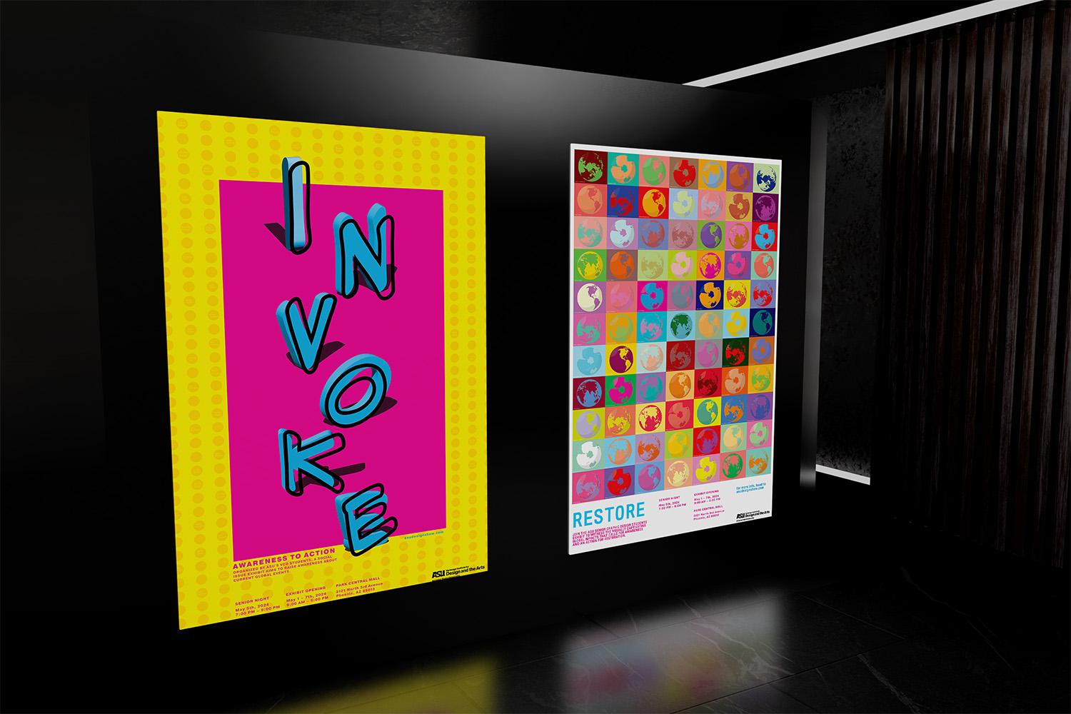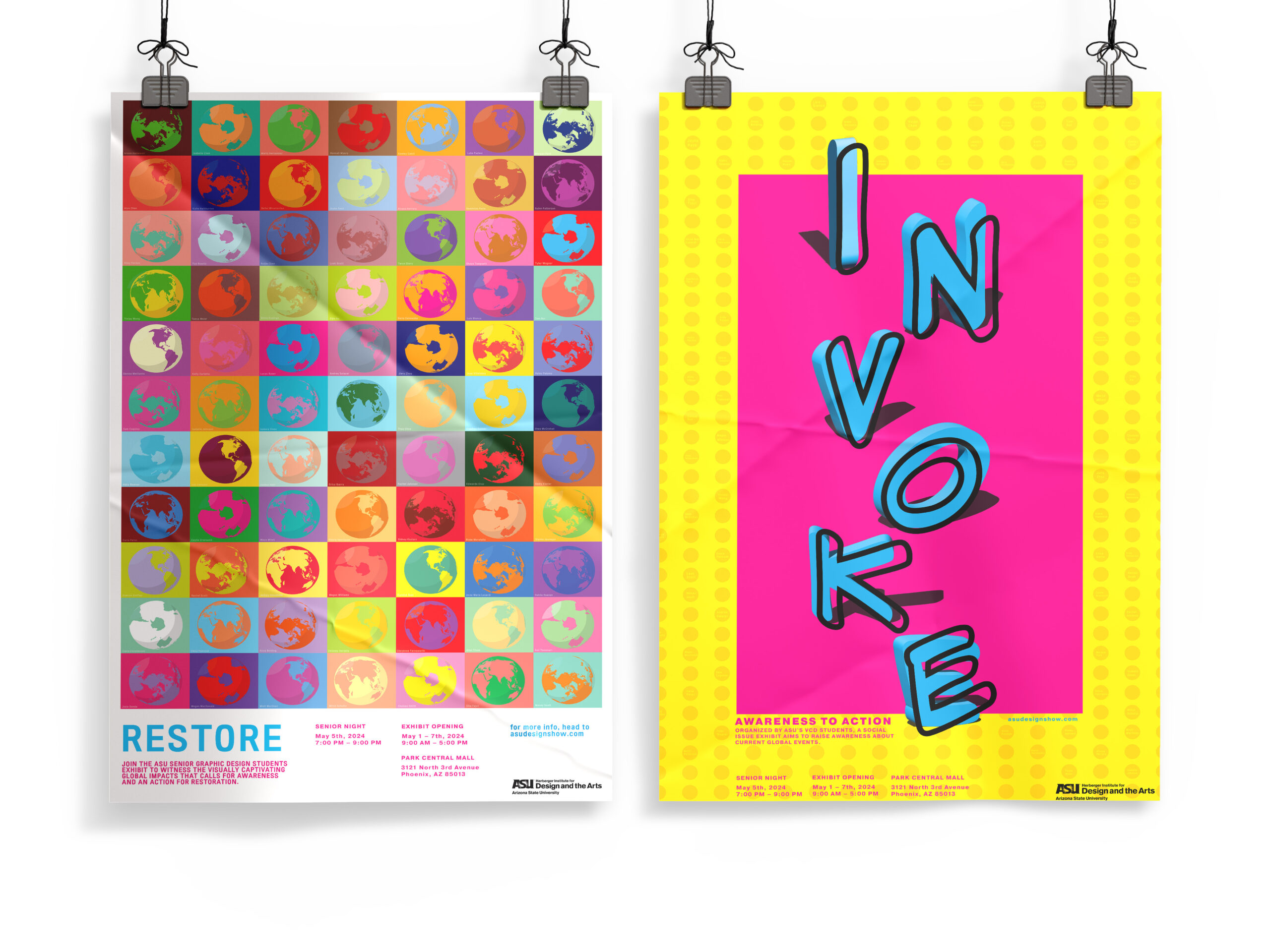 Two posters developed for the ASU Graphic Design Senior Exhibit